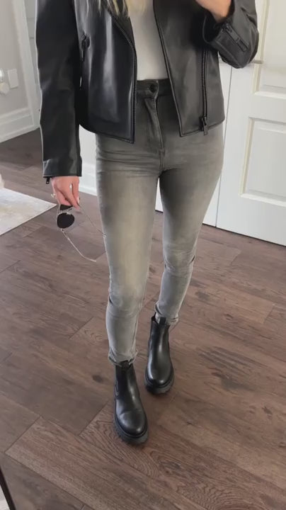 The 2976 Bex Chelsea boot gives the iconic slip-on model a powerful look. A chunky grooved sole with deep studs and an aggressive pattern provides extra height—a 2.5 cm platform and a 3.5 cm heel—while the high-quality Smooth leather gains more and more character the more you wear them. The yellow stitching and contrasting black and yellow heel strap are recognizable signature details. The Goodyear Welt construction ensures durability and allows for repairs. This leather rewards care: polish it to a shiny finish or embrace intentional wear for a distressed look. A break-in period is typical for Dr. Martens; maintenance requires only cleaning with a damp cloth and occasional rubbing with wax polish.