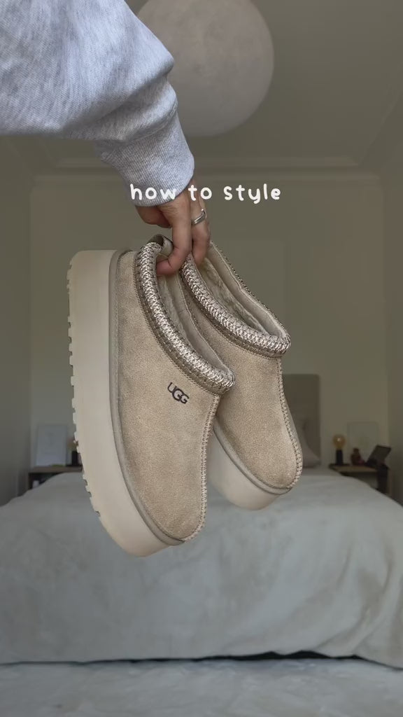 The UGGbraid detail is made from 100% recycled polyester, while the sugarcane-based EVA outsole provides durability and reduces the use of fossil fuels. With a 4.5 cm (1.75") platform and an exclusive sheepskin insole, this shoe is designed for all-day comfort.