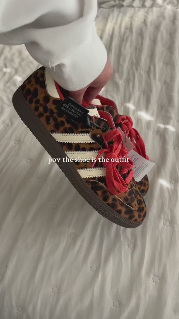 The Samba OG Leopard embodies the essence of retro innovation. With a leopard-print pony hair upper, enriched with premium leather details, these iconic sneakers combine the heritage of the 1950s with a bold, modern look. The colorful lining adds a touch of personality with every step, while the timeless silhouette offers unmatched versatility in style. Originally designed for indoor soccer, they have transcended their original function and become an integral part of urban culture. Wear the vibrant energy and confidence that only Samba OG can offer.