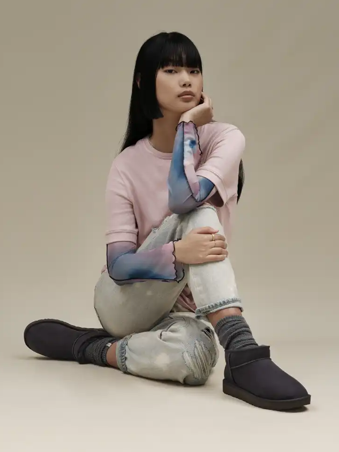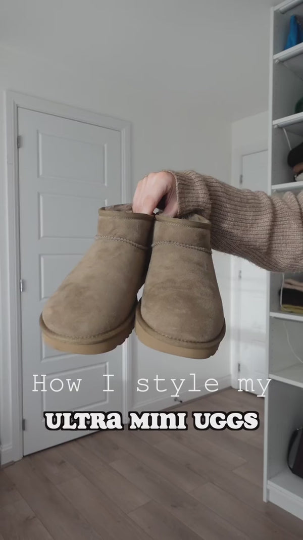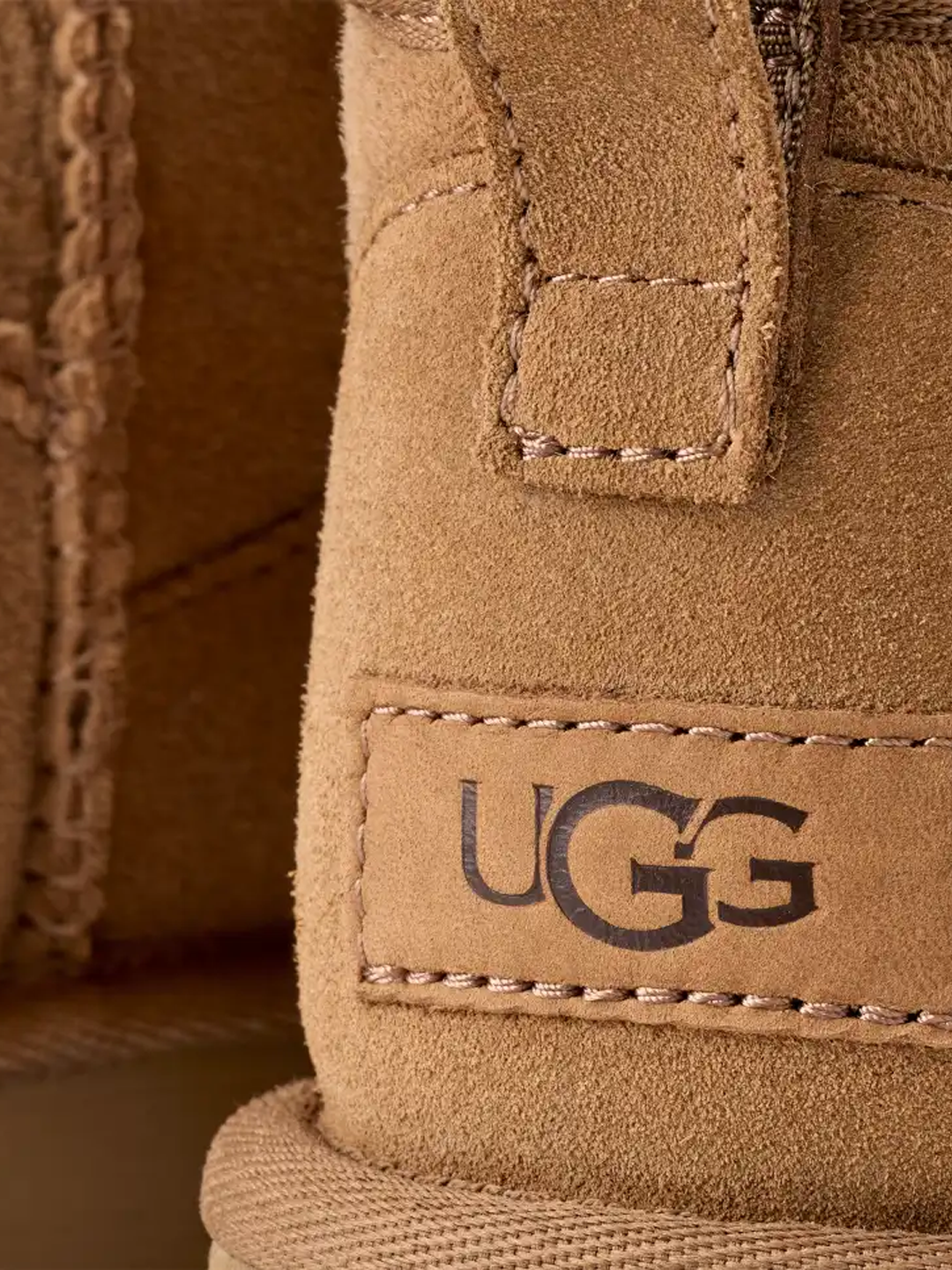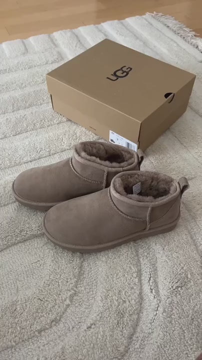 The Classic Ultra Mini is a popular design with a lower shaft for easy on and off. It is pre-treated to preserve its appearance and has all the hallmarks of the original Classic Boot, including UGG® sheepskin and a lightweight, flexible sole.